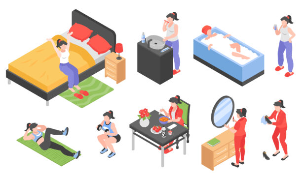 どちらのグループも、お腹・お尻・背中などを満遍なく鍛えるエクササイズが数種類採用され、ウォームアップ・クールダウンを含めおおよそ1時間の運動としました。